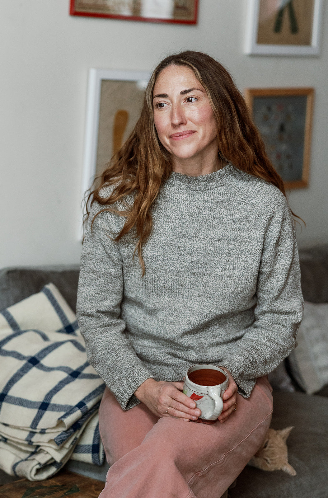 The Meg has tons of character - just like Meg. The nubby Ragg yarn is spun from super soft wool grown by pampered Merino sheep on a small farm in Middleburg, Virginia. She has slight detailing along the raglan sleeves & short, feminine ribbing.