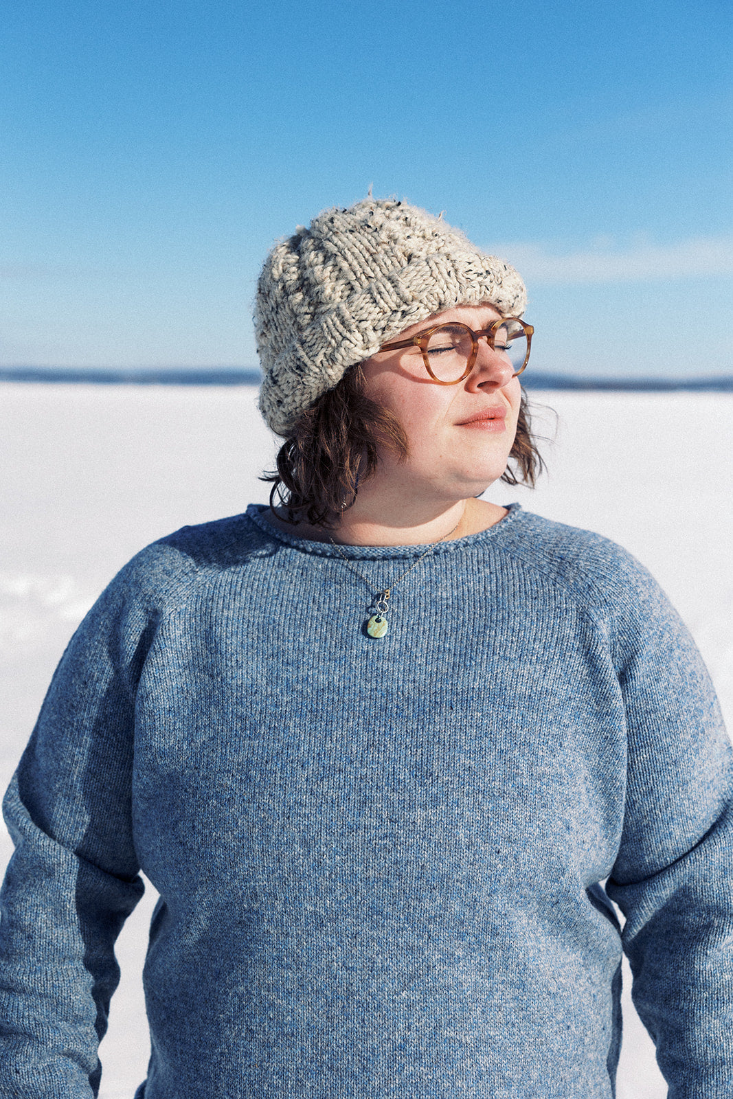 The New Brunswick Roll Neck, knit in our wooliest wool & chunkiest yarn yet, is not for the faint of heart. The wool was collected from New England farms by two generations of shearers - who know their fiber - & is spun & dyed by our neighbors in the sovereign nation of Canada.  Priya, in Heather Charcoal Gray, is 5'7"; Grace, in Heather Fir Green, is 5'4"; & Lexi, in Heather Sky Blue, is also 5'4" - all models are wearing size Medium.