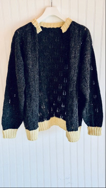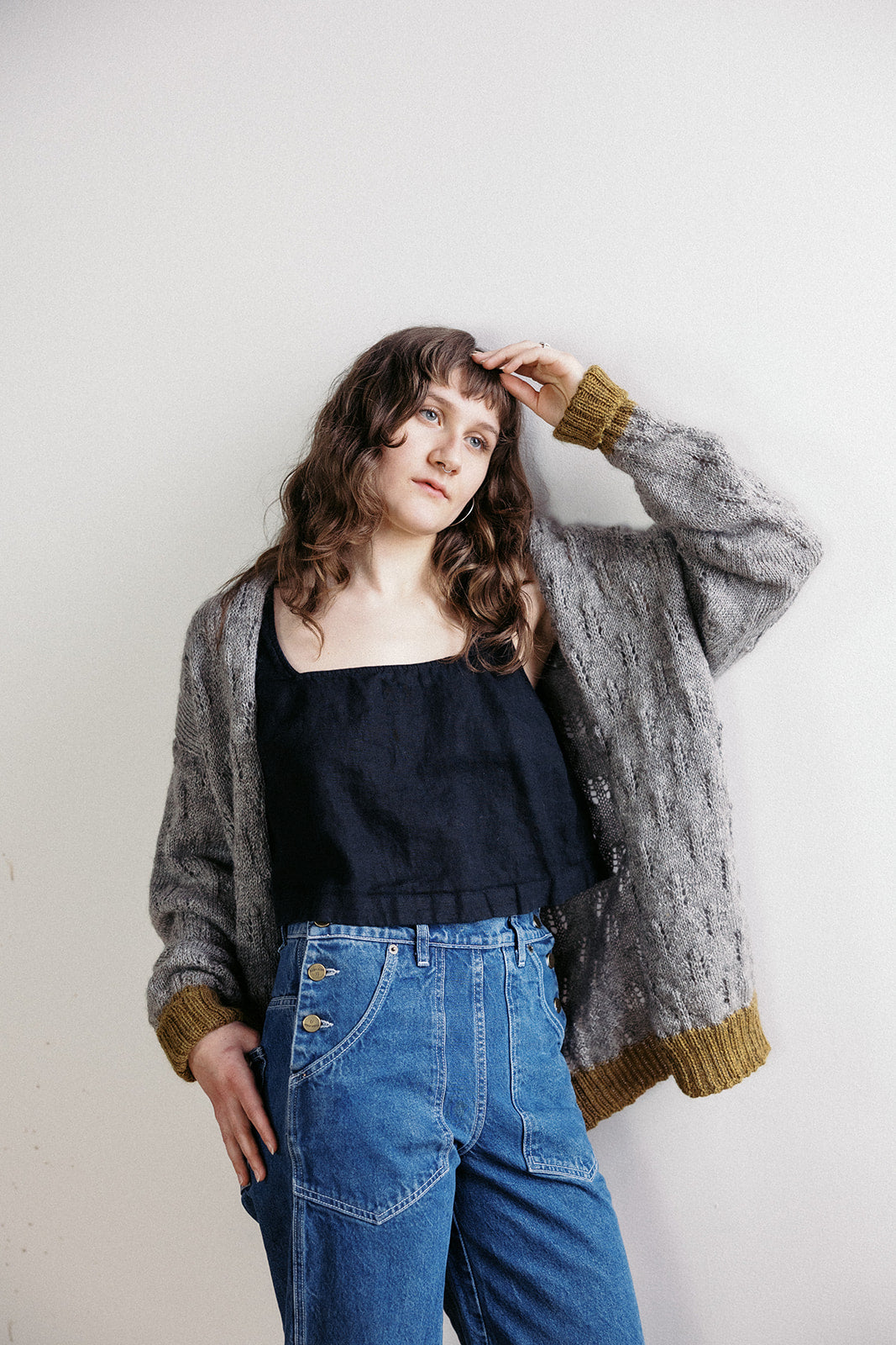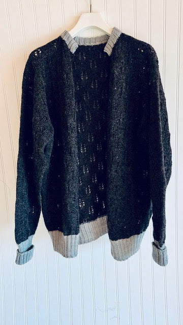 The Helen was designed & crafted in collaboration with Vesper Hill Farm in Charlotte, VT whose farmer worked closely with Cyrus; they created a pattern & silhouette that would accentuate the silky, richly-toned fiber of her flock of Lincoln Longwools. She hand dyed then hand linked the trim & honestly, the loving care invested in the farm's land, flock, & fiber are what make this unique piece so special.